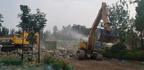 新華社客戶端河南頻道5月31日電(記者李鵬)5月30日,多臺挖掘機、清運卡車及除塵霧炮車等大型機械設備開進位于黃河灘區(qū)內(nèi)的鄭州新萬國違建游園內(nèi),開始攻堅拆除。