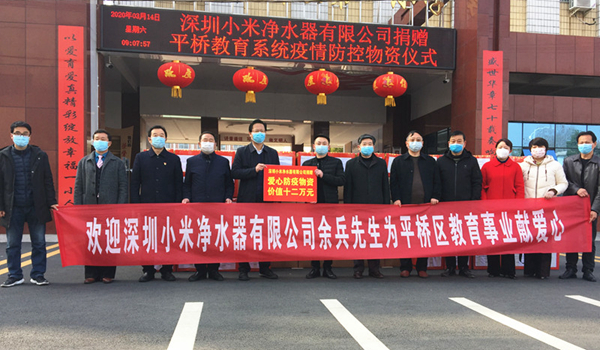 3月14日上午,深圳小米凈水器有限公司捐贈平橋區(qū)教育系統(tǒng)抗疫物資儀式在區(qū)一小舉行。區(qū)委常委、副區(qū)長江玉安,區(qū)委組織部副部長肖同慶,區(qū)教體局黨組書記、局長劉浩等領(lǐng)導(dǎo)參加捐贈儀式。
