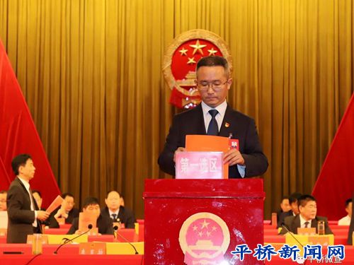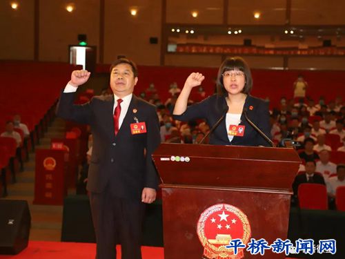 新當(dāng)選的平橋區(qū)監(jiān)察委員會(huì)主任李金娥和平橋區(qū)人民法院院長(zhǎng)李振進(jìn)行了憲法宣誓。