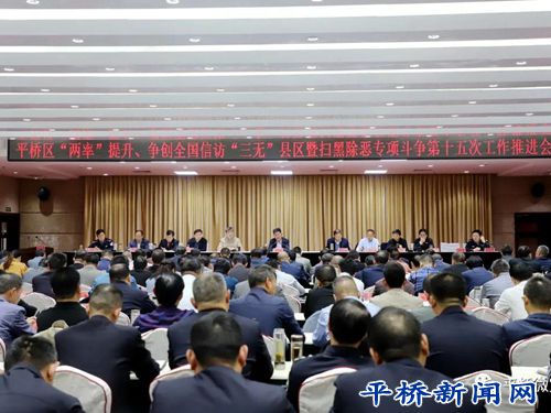10月22日,平橋區(qū)召開“兩率”提升、爭創(chuàng)全國信訪“三無縣區(qū)”暨掃黑除惡專項斗爭第十五次工作推進會,動員全區(qū)上下統(tǒng)一思想、堅定信心,全力以赴、善作善成,確保我區(qū)“兩率”提升和“三無縣區(qū)”創(chuàng)建工作如期達標(biāo),掃黑除惡工作圓滿收官。區(qū)委書記李靈敏出席會議并講話,區(qū)委副書記黃如福主持會議。