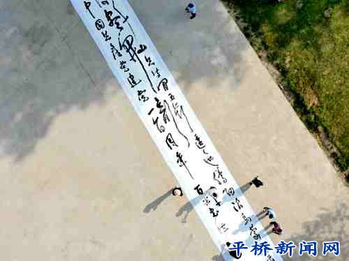在紅色文化展演中,平橋區(qū)書法家年鶴嶺在尖山文化廣場揮毫潑墨,其創(chuàng)作的七律《長征》百米書法長卷引得現(xiàn)場群眾陣陣喝彩,為慶祝建黨活動增添了一道藝術的風景線。